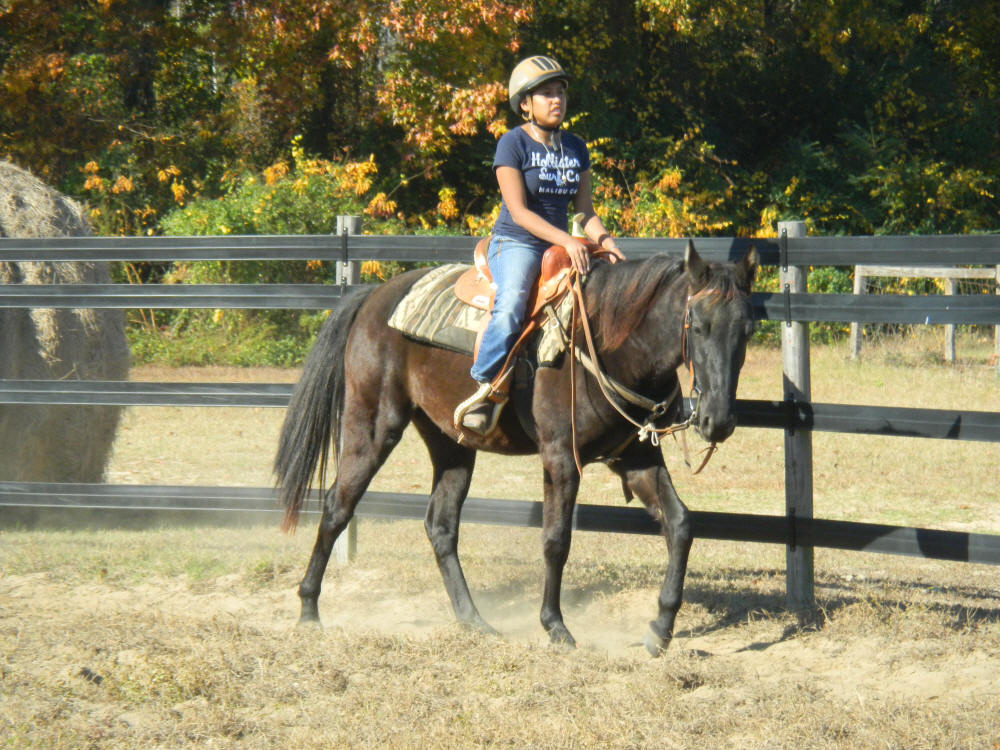 13-year-old black Walker and a favorite of Cindi's to ride. She is a